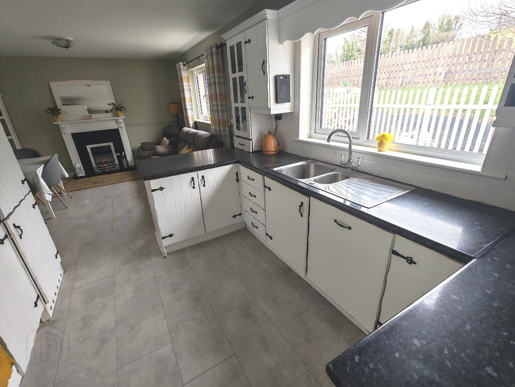 Laminate floor, fully fitted floor & wall units, integrated fridge / freezer unit, integrated electric hob & oven with overhead extractor fan, integrated dishwasher, 1½ tub stainless steel sink unit