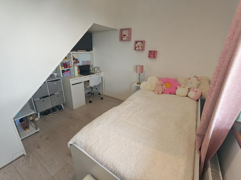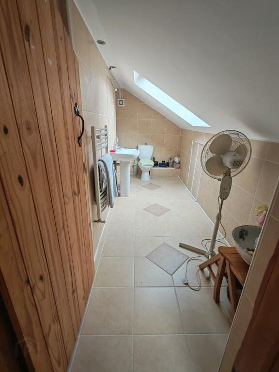 Fully tiled floor & walls, wc & wash hand basin in white suite, Triton T80z electric shower, heated towel rail