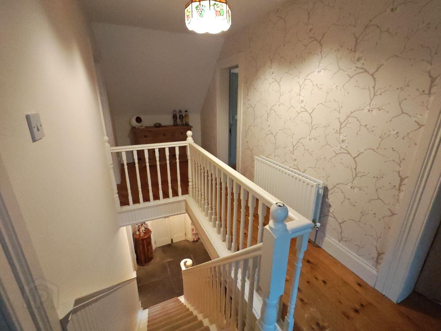 Flagstone floor, stairs to first floor, half t&g wall panelling to stairs